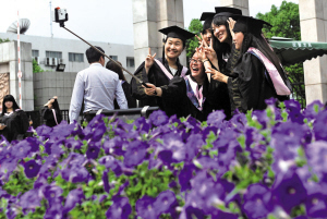 昨天上午,嘉兴学院的应届毕业生纷纷穿上了帅气学士服拍摄毕业合影。