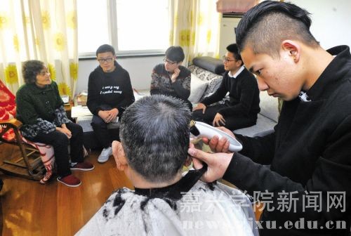 昨天上午(3月19日),嘉兴学院南湖学院绿荫青年志愿者协会的志愿者们来到新嘉街道竹桥社区倪森荣夫妻家中,为他们理发,陪着聊天做家务。据悉,三个月前,志愿者们和竹桥社区的11位空巢老人结对,每周都上门提供服务。