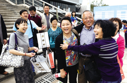 从全国各地赶来参加盛会的77届嘉兴学院学子相隔37年后和任课老师亲密拥抱。