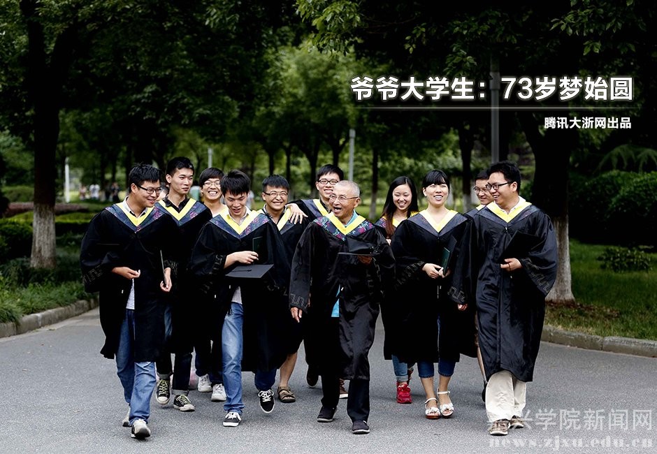 嘉兴学院,73岁的大学生邹伟敏是个名人。这位背佝偻、发花白的“爷爷大学生”,是浙江省年纪最大的全日制本科毕业生,也是嘉兴学院建校百年来年龄最大的全日制本科毕业生。在班级里,同学们都喜欢叫他“邹同学”、“邹哥”、“邹老爷子”。2014年6月9日,他迎来了毕业的日子,50年的大学本科梦在这一天实现。