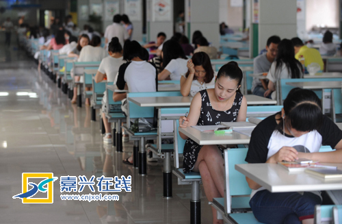 昨天下午,嘉兴学院越秀校区食堂里,前来学习的大学生坐得满满当当。天气渐热,校园开设空调的图书馆和食堂都被用功学习的大学生占得满满的。