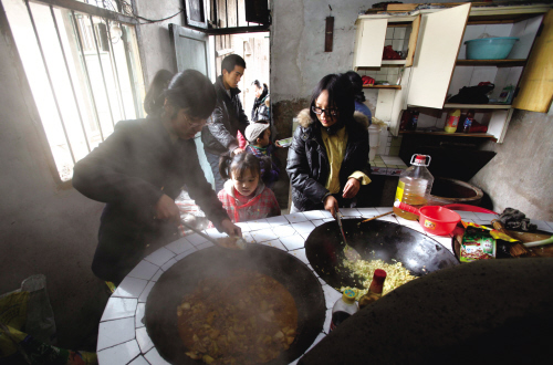 小梁和其他支教老师为所德小学办起爱心食堂。 N记者 赵颖硕 摄