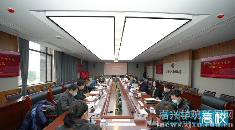 1月10日,嘉兴学院举行首批现代产业学院授牌仪式。嘉兴市经济和信息化局党组成员、副局长王荣,市教育局副局长苏海林,嘉兴学院党委委员、副校长(主持日常工作)胡俊云,党委委员、副校长张琦出席仪式。