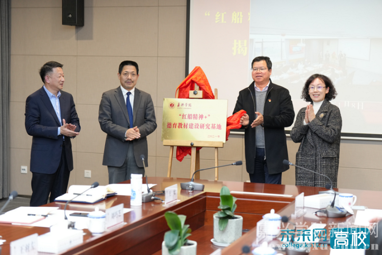 仪式上,吴云达、舒志定为嘉兴学院“红船精神+”德育教材建设研究基地揭牌。