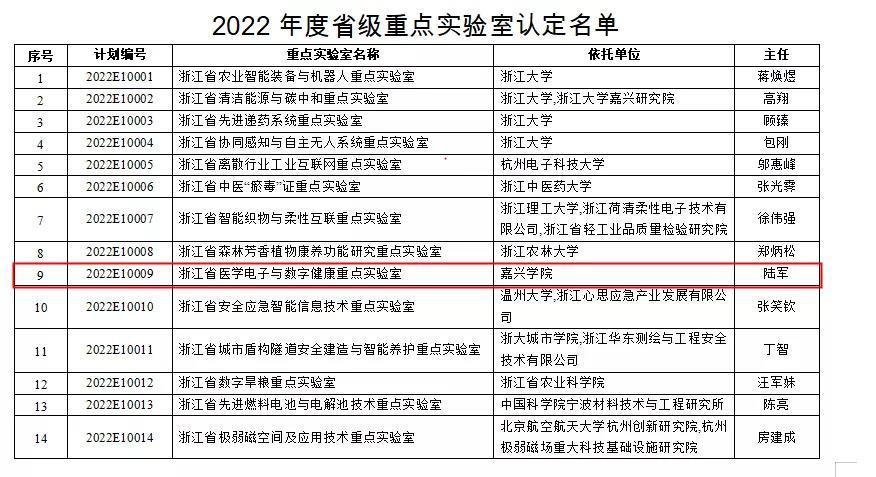 近日,浙江省科学技术厅公布了2022年度省级重点实验室认定名单、2021年度省级新型研发机构认定名单。嘉兴学院“浙江省医学电子与数字健康重点实验室”成功获批2022年度省级重点实验室,“嘉兴学院G60科创走廊产业与创新研究院”成功获批2021年度省级新型研发机构。