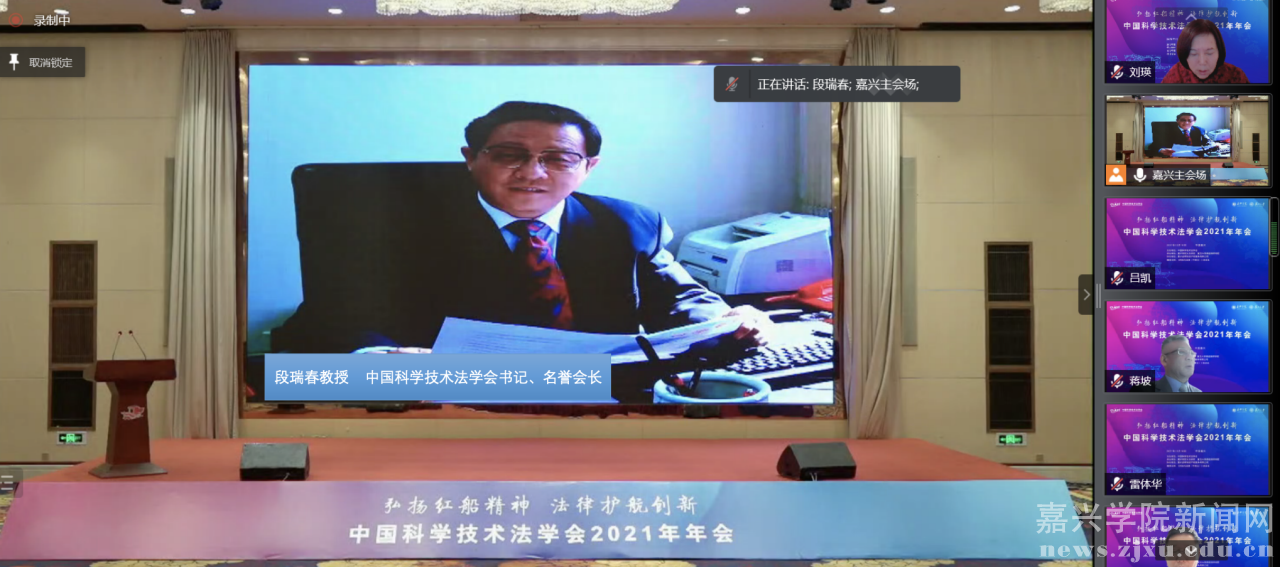 12月18日上午,由中国科学技术法学会主办、嘉兴学院文法学院和复旦大学高级律师学院承办、嘉兴启明知识产权服务有限公司协办的中国科学技术法学会2021年年会在嘉兴举行。本次年会以“弘扬红船精神,法律护航创新”为主题,通过线上会议方式召开,来自全国各高等院校、科研机构、政府部门、司法机关以及相关企业的近400名专家、学者和法律实务工作者齐聚云端参会。