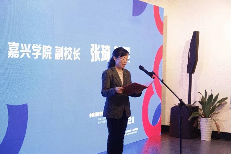 嘉兴学院副校长张琦代表学校向出席开幕式的领导、嘉宾表示欢迎。她指出,当前设计的本土化与国际化是中韩日三国艺术设计界共同面对的重要课题,而高等学校艺术设计教育是应对这一课题的重要阵地。她希望,嘉兴学院、韩国白石大学、日本东亚大学积极参与、深入探讨艺术设计和艺术设计教育,将联展办成交流、发展艺术设计与艺术设计教育的重要平台,共同为实现东亚地区艺术设计的本土化与国际化作出贡献,同时期待更多的亚洲国家、更多的亚洲高校参与到展览中。