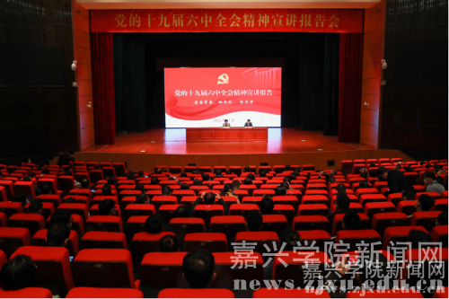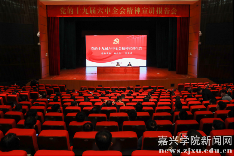 11月28日上午,省委常委、秘书长陈奕君赴嘉兴学院宣讲党的十九届六中全会精神。嘉兴学院党委书记卢新波主持宣讲报告会。
