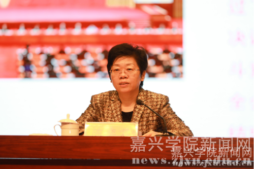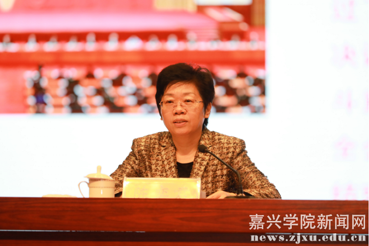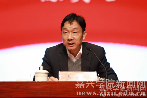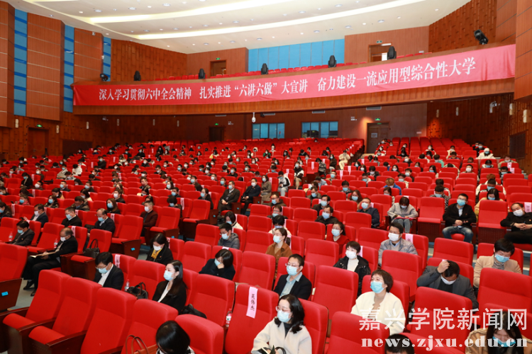 嘉兴市委常委、秘书长敖考权,省委办公厅协调处处长许立、副处长蒋海清,嘉兴学院校领导、二级教学单位党政领导班子、党委委员、科级干部及学生党员和骨干代表到场聆听。
