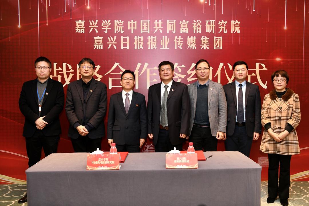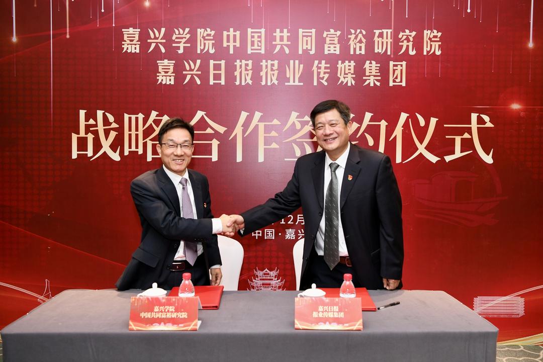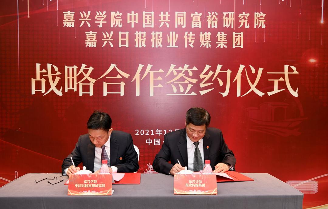 今天上午,嘉兴学院中国共同富裕研究院与嘉兴日报报业传媒集团战略合作签约仪式在南湖宾馆举行。