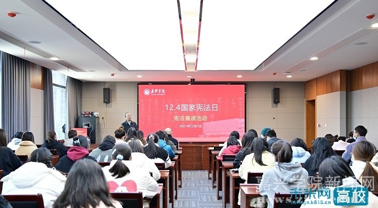 12月3日,嘉兴学院师生通过网络连接主会场同步参与了教育部在北京举办的教育系统“宪法晨读”活动。该校党委委员、副校长杨培强出席活动并讲话。相关部门(单位)师生代表50余人参加活动。
