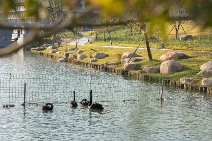 近日,同济大学浙江学院赠送的四只天鹅入住嘉兴学院虹源湖。它们羽翼丰满,体态轻盈:时而游荡水面、时而漫步草丛、时而与鱼虾嬉戏、时而在树荫下小憩……初冬的暖阳下,那些被湖水打湿了的羽毛在光影间微微闪光,为冬日的虹源湖增添了许多趣味与生气。