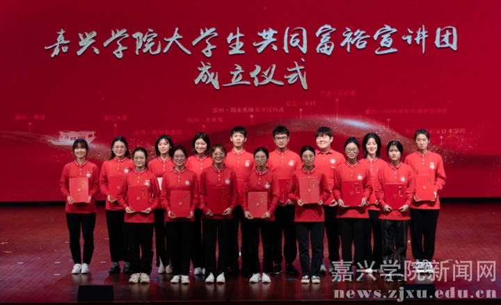 据悉,嘉兴学院大学生共同富裕宣讲团依托嘉兴学院中国共同富裕研究院成立,首期在全校招录20名青年大学生,主要开展理论学习、实践调研等工作。