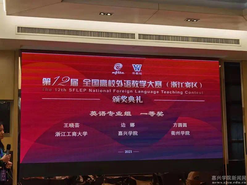 日前,由浙江省高等学校外国语言文学类专业教学指导委员会和上海外语教育出版社主办,浙江外国语学院承办的第十二届“外教社杯”全国高校外语教学大赛(浙江赛区)决赛落幕。嘉兴学院外国语学院教师边娜参加英语专业组比赛,荣获浙江赛区一等奖。
