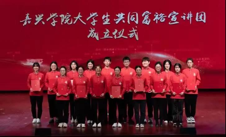 据悉,嘉兴学院大学生共同富裕宣讲团依托学校中国共同富裕研究院成立,为国内高校首支大学生共同富裕宣讲团,首期在全校招录20名青年大学生,主要开展理论学习、实践调研、宣讲等工作。