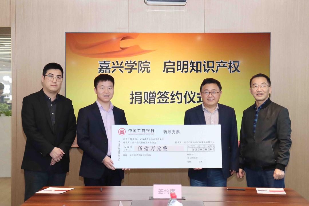 仪式现场,启明知识产权向嘉兴学院捐赠50万元人民币,用于支持学校建设发展和困难学生帮扶。根据协议,双方还将围绕大学生实习、就业、创新创业及科技成果转化等方面开展紧密合作。