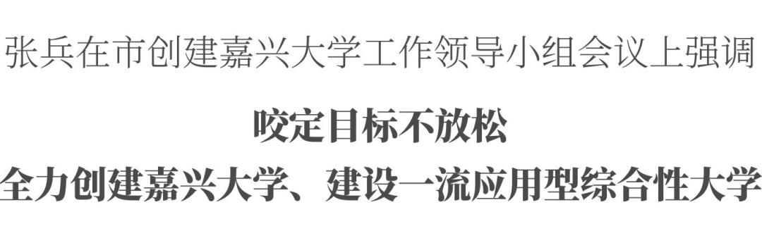 要咬定目标不放松,全力推进“创大”工作、建设一流应用型综合性大学。嘉兴学院要加强党的领导,把立德树人作为根本任务,全力做好思想政治工作,坚持教育为人民服务、为中国共产党治国理政服务、为巩固和发展中国特色社会主义服务,为改革开放和社会主义现代化建设服务。