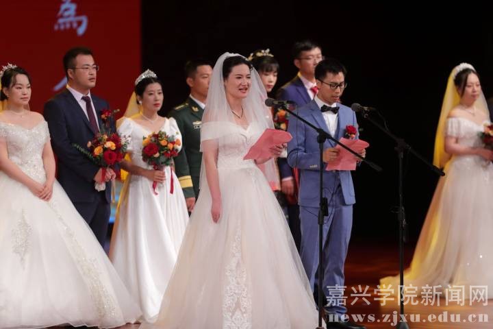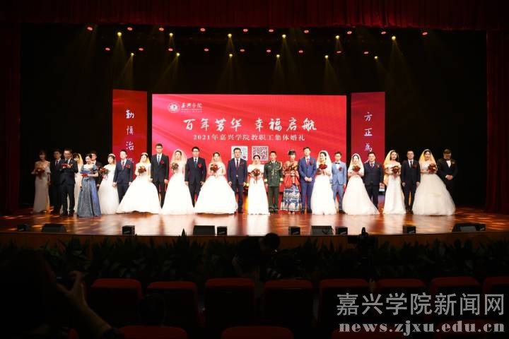金秋有约,爱在嘉院。10月16日,嘉兴学院在梁林校区剧场举行“百年芳华 幸福启航”2021年教职工集体婚礼。校领导卢新波、吴云达、钱方明、胡俊云、杨培强和金婚教职工代表、新人亲友及师生代表一起见证了12对新人喜结连理。
