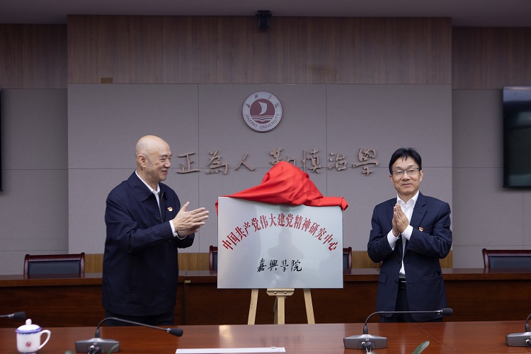 会上宣读了嘉兴学院中国共产党伟大建党精神研究中心成立文件;邵维正、卢新波共同为中国共产党伟大建党精神研究中心揭牌。
