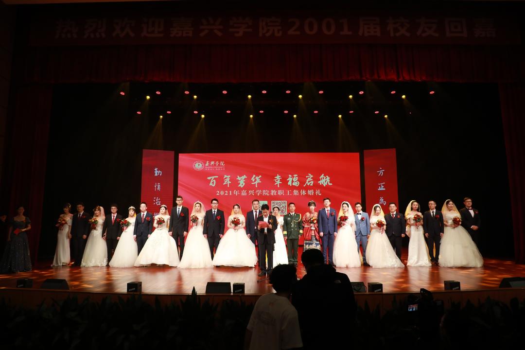 今天,嘉兴学院在梁林校区剧院内,为学院的12对新人举办集体婚礼。