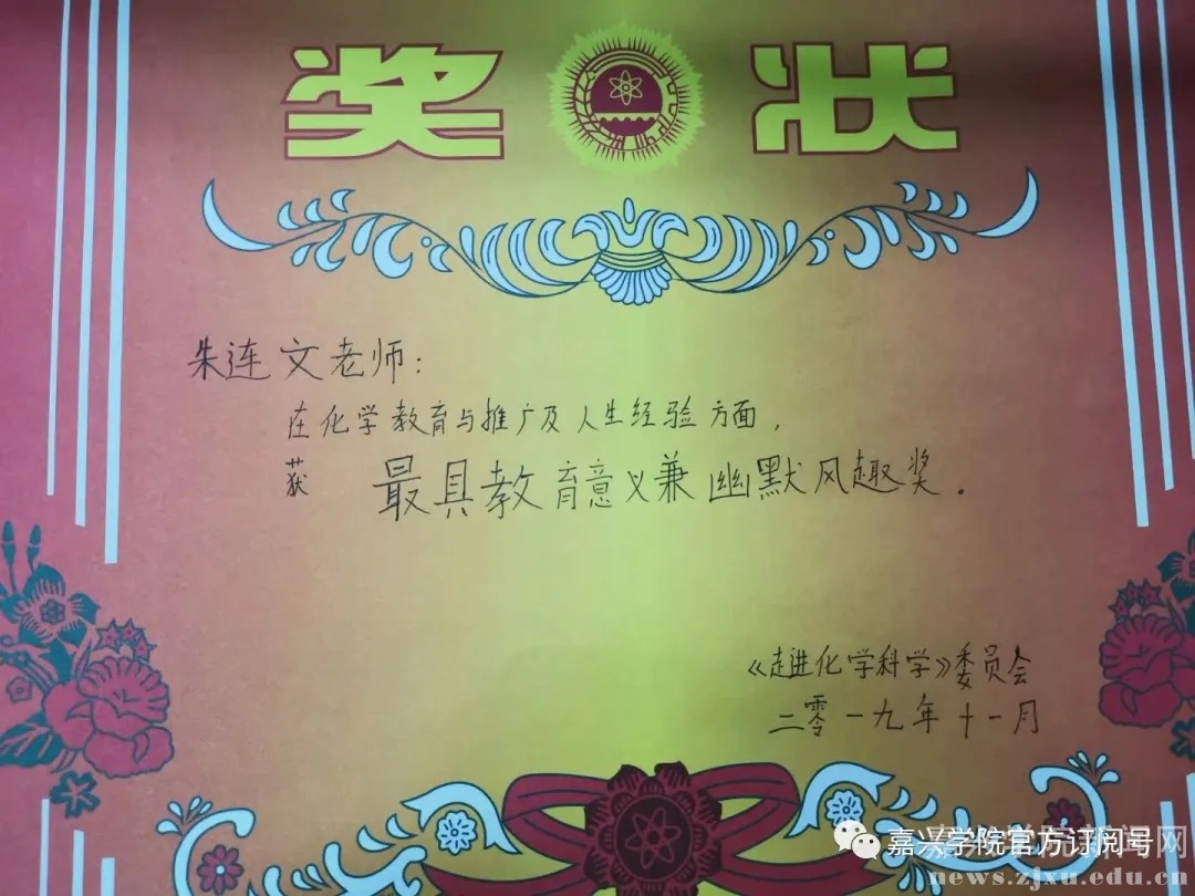 作为生化学院的专任教师,朱老师目前主要教授《无机化学》《材料化学》《魅力化学》以及《走近化学科学》这几门课程,其中由他亲自开创的《魅力化学》课程曾获嘉兴学院首届教师教学创新大赛一等奖。谈起这门课程,他直言:“学生们在初高中都学过化学,但大多时候只是为了应试,并没有真正洞悉化学的精彩内涵。”而在这门课上,他介绍了化学在生产生活中的实际用途。用化学元素如何写成三封浪漫情书?壁虎为何能飞檐走壁?大自然是怎样用自己的魔力把脏水变干净?莲花出淤泥而不染又有着怎样的化学原理……正如“魅力化学”这个名字一般,他在这门课上尽情展现了独属于化学的魅力。