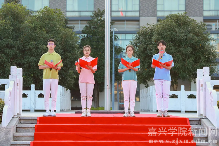 仪式上,校学生会执行主席李倩作国旗下发言,代表全校青年学生发出“请党放心 强国有我”的青春誓言。大学生艺术团成员深情朗诵《以青春之名 守卫红船启航的地方》,全体师生代表齐声高唱《没有共产党就没有新中国》,盛情礼赞伟大的中国共产党、伟大的祖国,表达南湖红船旁高校师生对祖国的美好祝愿和真挚祝福。