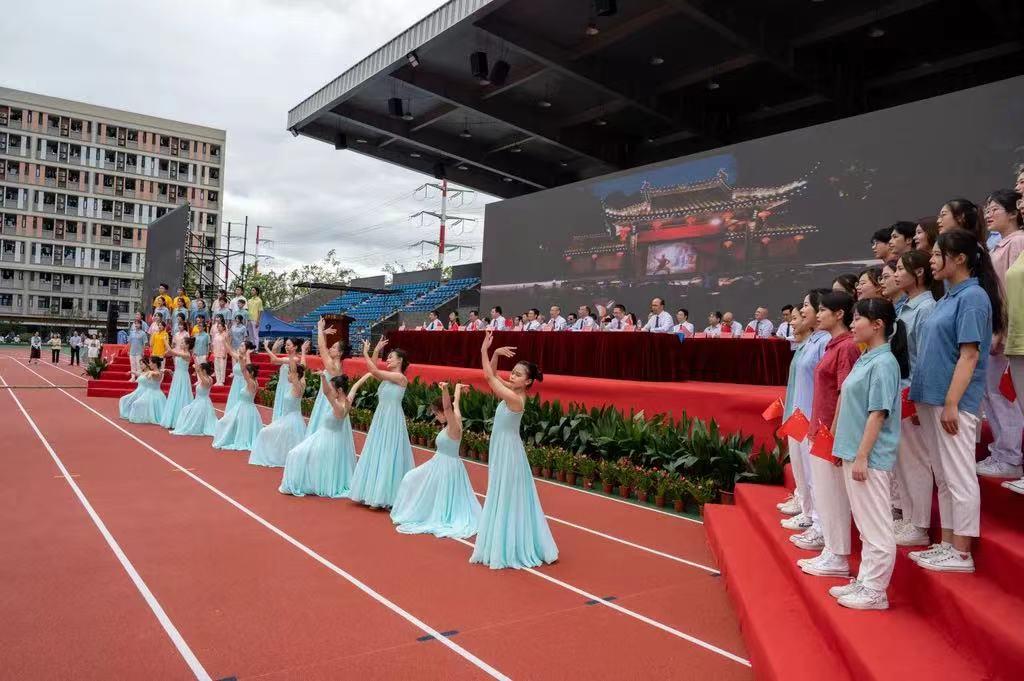 典礼上,还举行了新生入学宣誓仪式。全体师生一起欣赏了学生歌伴舞《强国一代有我在》。典礼在师生齐唱《歌唱祖国》中结束。
