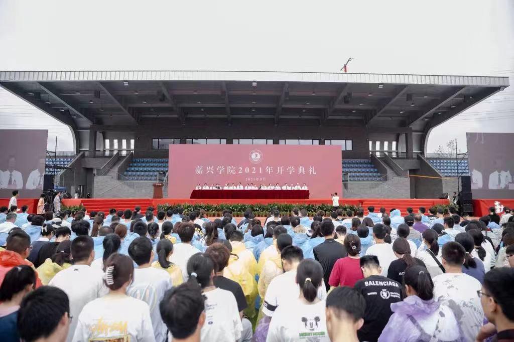 今天上午,嘉兴学院2021级新生开学典礼在梁林校区二期田径场举行。