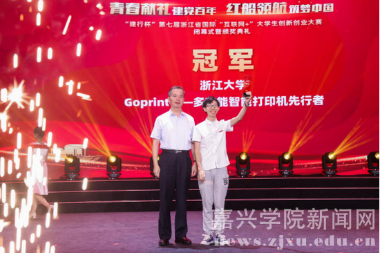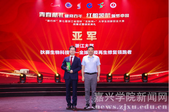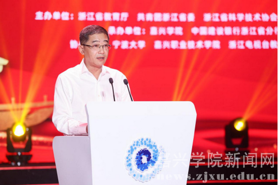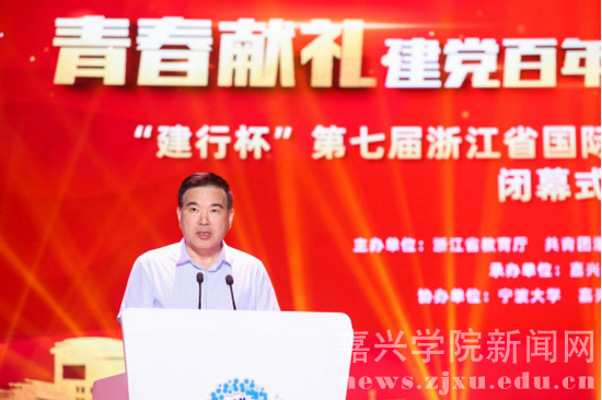 7月23日下午,“建行杯”第七届浙江省国际“互联网+”大学生创新创业大赛闭幕式暨颁奖典礼在嘉兴学院举行。浙江省教育厅二级巡视员王振斌,嘉兴学院党委书记卢新波,浙江省科协副主席陆锦,中国建设银行浙江省分行副行长郑浩,浙江师范大学党委副书记朱坚,嘉兴学院副院长张琦,宁波工程学院副院长徐可明,嘉兴职业技术学院副院长庄应强等领导出席。浙江省教育厅、中国建设银行浙江省分行、浙江省科协、共青团浙江省委等单位职能处室负责人,嘉兴市教育局、中国建设银行嘉兴分行负责人,全省高校创业学院负责人及师生代表参加线下活动;闭幕式进行了网络同步直播,300余万师生群众在线收看。