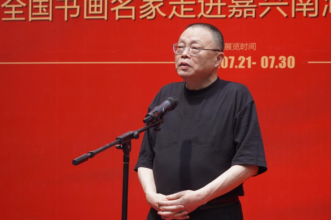 嘉兴南湖学院校长贾文胜在致辞中谈到,相信此次书画展的举办,既能够有力地弘扬伟大建党精神和红船精神,讲好红船故事、中国共产党的故事、新时代的故事,推动嘉兴红色文化建设,丰富广大市民的精神文化生活;又能发挥红色文化资源育人的示范作用,在嘉兴学院、嘉兴南湖学院两所高校的美育建设、校园文化发展史上留下浓郁靓丽的一笔。
