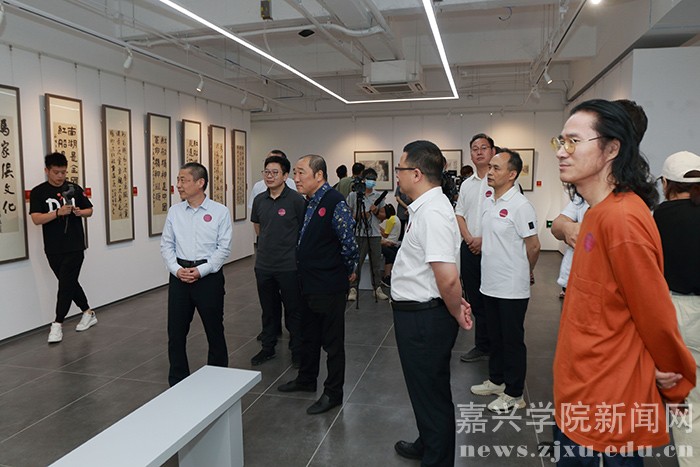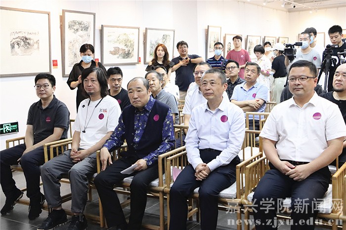 这批作品主题鲜明、笔墨精妙、蕴含情感,体现了新时代艺术家对党、对祖国、对人民的热情讴歌,彰显了文艺最磅礴的时代力量。中国国家画院院长卢禹舜,中国国家画院党委副书记、纪委书记王青云,中国工程院院士、中国电子科技集团首席科学家、嘉兴学院院长、空警-2000预警机总设计师陆军,嘉兴南湖学院党委副书记胡文蔚,中国文艺志愿者协会副主席、中国国家画院美术馆馆长何加林,《中国美术报》社社长、总编辑王平,北京市工商联副会长苗谦,中国美术家协会理事、中国国家画院人物画所副所长方土,中国国家画院理论所副所长陈明,中国国家画院艺术家王永亮、顾平,中国国家博物馆书画院专职画家赵建军,北京林业大学美术研究所所长、艺术学院教授李汉平,《中国美术报》社副社长、副总编辑张苑、金鑫,民革中央画院理事窦金庸,北京大道堂美术馆馆长、书画家陈仕彬,中国美术家协会理事王静芳,嘉兴南湖学院宣传部副部长杨燕群,嘉兴学院研究生处学科建设科科长孙大宏及新闻媒体、艺术爱好者百余人出席开幕式。卢禹舜、陆军、胡文蔚、何加林、王平先后致辞,王青云主持开幕式。