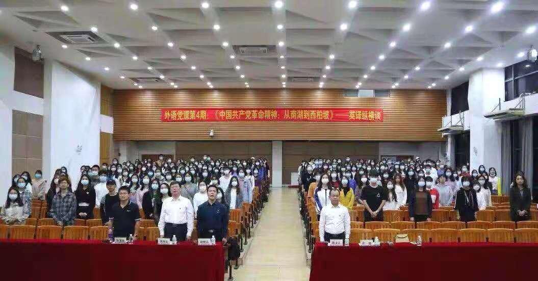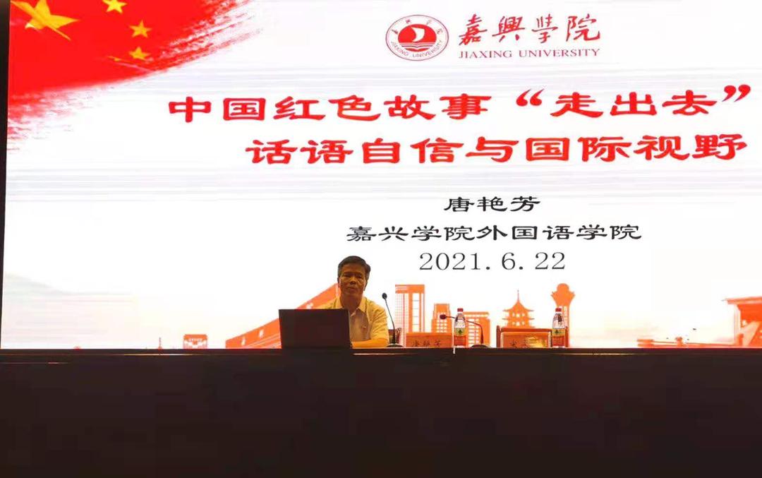 这是唐艳芳教授今年第四次走出校门宣讲嘉兴学院师生用外语讲中国红色故事的举措和经验。之前,他还受邀为华南农业大学、江苏科技大学和山东理工大学外国语学院的师生分别作题为《〈中国共产党革命精神:从南湖到西柏坡〉英译纵横谈》《用外语讲红色故事:意识˙策略˙方法》《讲红色故事 抒外语情怀》等专题讲座,受到师生的热烈欢迎。他以新时代外语人的责任与担当,介绍中国红色故事英译策略与方法以及译者应有的话语意识、国际视野和文化自信,鼓励外语人灵活运用多种翻译转换技巧,用外语专业知识讲好中国红色故事,传播中国红色文化,让世界了解中国,让中国走向世界,同时通过融党史教育于专业学习中,引导广大外语学子努力成为具备扎实的专业学识、开阔的国际视野、浓厚的家国情怀和创新精神的新时代外语人才,以外语党课和专题讲座的形式创新思政育人新模式,推动立德树人根本任务的有效落实。