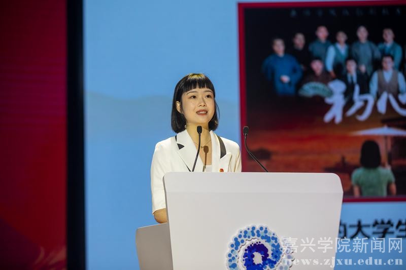 嘉兴学院初心公益团队的孔玉叶的题目是《初心如磐践使命,青春筑梦向未来》。作为党的诞生地的大学,嘉兴学院始终将开天辟地、敢为人先、追求理想的初心,将坚定不移、百折不挠、追逐光明的信仰,融入青年的信仰教育,融入高校校园的育人文化。孔玉叶分享了团队参与原创红色话剧《初心》的创作、导演、表演和推广的心路历程。如今,他们每年利用暑假组成十多支小分队去往全国各地的贫困乡镇、文化大礼堂、企业、学校,将话剧《初心》传播到祖国的角角落落。通过系列话剧的公开演出和“沉浸式”体验,把“思政教育+红色剧演”以体验形式向社会开放推广,获得社会效益同时挖掘红色文化所蕴含的经济价值。