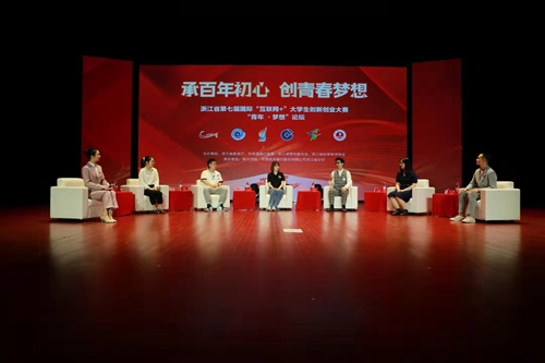 此次论坛作为浙江省第七届国际“互联网+”大学生创新创业大赛(简称“大赛”)同期活动,共同探讨当代青年应如何传承百年初心、紧抓时代脉搏、树立远大理想、勇于创新创业、与祖国共奋进。