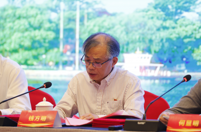 钱方明在致辞中指出,在建党百年华诞到来之际,第十五届浙江省马克思主义理论研讨会暨2021年浙江省马克思主义学会年会在中国革命红船起航地举办,对于全面总结和深入研究中国共产党百年奋斗的不凡历程、辉煌成就、伟大精神和宝贵经验,进一步加强马克思主义理论研究领域的交流与合作,深入推进马克思主义理论学科建设创新发展,意义重大。他表示,作为中国革命红船起航地高校,学校自觉承担起弘扬红船精神、传承红色基因的政治担当,全力发展以红船精神研究为特色的马克思主义理论学科,学校马克思主义学院能作为本次会议的承办单位之一,充分体现了省马克思主义学会、省教育厅宣教处对学校的充分信任。他希望,专家学者充分交流研讨,推动会议成为一次碰撞思想火花、凝聚集体智慧、推进理论创新的盛会,成为追寻百年初心、牢记伟大使命、勇担时代重任的新起点。
