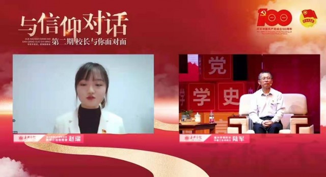 随后,学生代表纷纷围绕党课内容和如何自我提升展开交流探讨。“在听了陆校长的党课后,我对我们党组织有了更高的憧憬感。作为一名学医的学生,我在疫情期间,也积极投入到了抗击疫情的基层一线工作中,为我的家乡吉林做出了属于自己的小小贡献。当我戴上护目镜和口罩,穿上防护服的那一刻,我觉得特别神圣。我觉得青年就应该这样,主动为国家出一份力,在自己的岗位上发光发热,用自己的青春书写属于这个时代的华彩篇章。”来自医学院药学专业的郑同学为大家分享了自己参与志愿活动的宝贵经历。