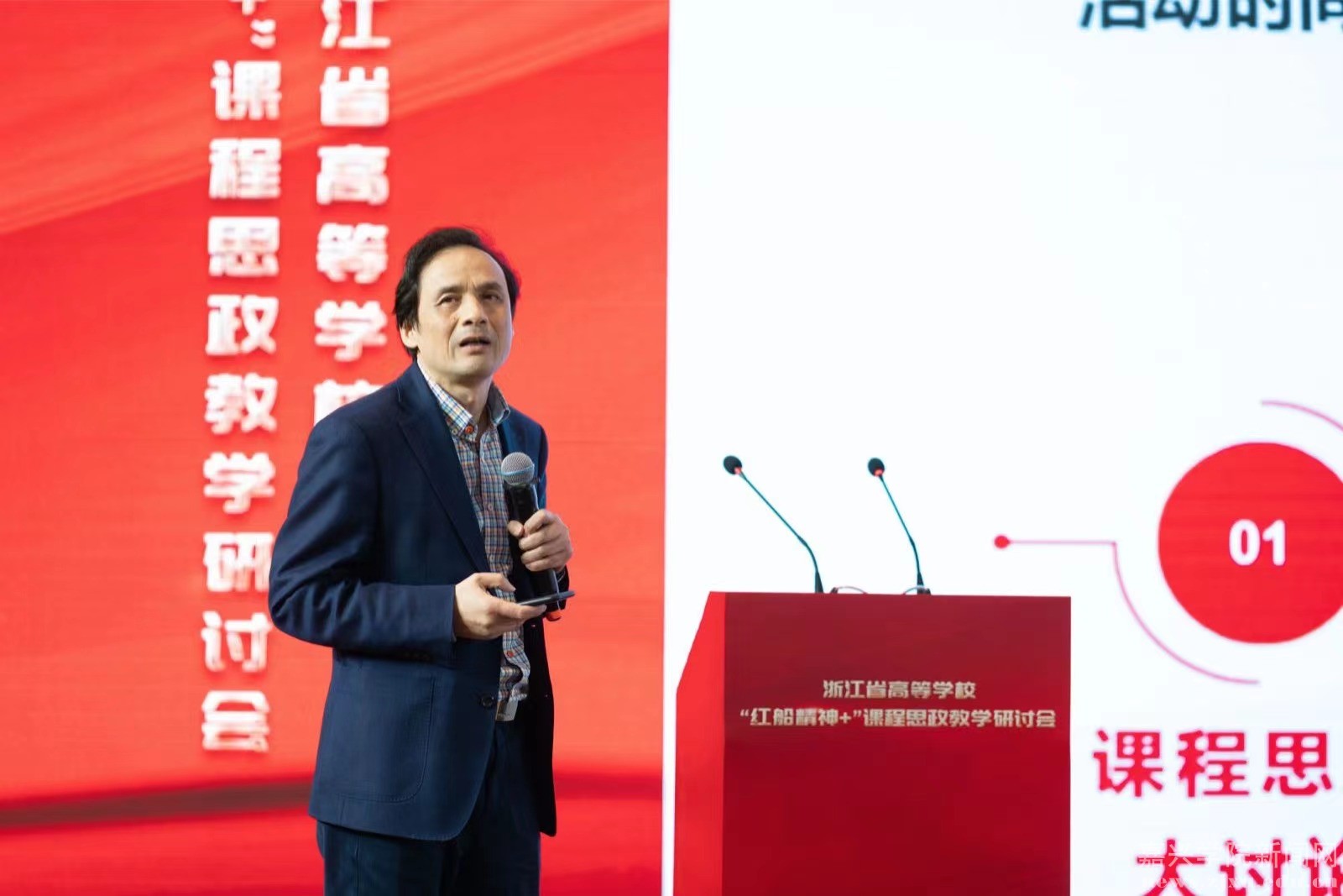 大会特邀吴云达和卢燕分别对“红船精神”和《浙江省高校课程思政建设实施方案》进行了解读。吴云达带领大家研读了习近平总书记2005年在《光明日报》发表的署名文章《弘扬“红船精神” 走在时代前列》,并从红船精神集中体现了中国共产党的建党精神、红船精神是中国革命精神之源、红船精神是党的先进性之源、红船精神昭示着中国共产党人的初心等四个方面作了深刻解读。卢燕则从总体要求、主要任务、保障措施等方面详细介绍了《实施方案》。