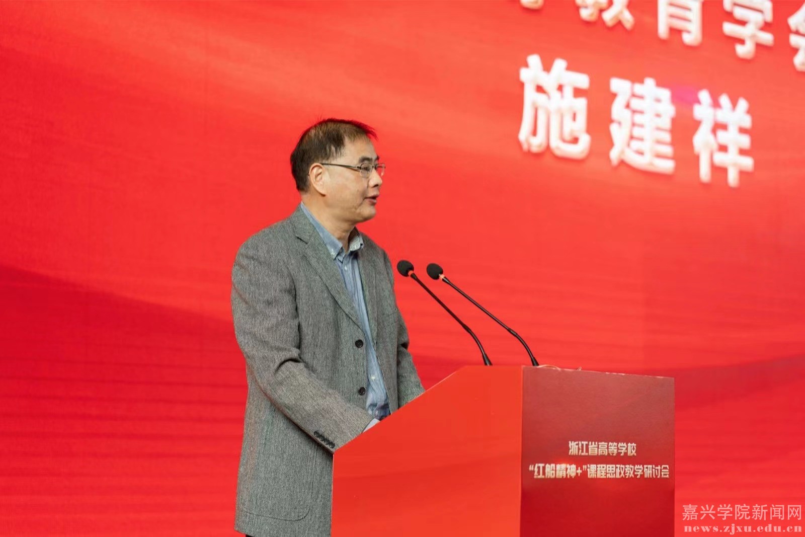 施建祥表示,浙江省高等教育学会在省教育厅的指导下,长期以来积极参与我省高校课程思政建设工作,推动我省课程思政建设进程,致力于站在“三地一窗口”的高度做好浙江课程思政样本。今年是中国共产党成立100周年,在中国革命红船起航地的嘉兴举办全省高校“红船精神+”课程思政教学研讨会恰逢其时,意义重大,希望与会代表坚持以“首创、奋斗、奉献”的红船精神为指引,深入贯彻落实相关文件精神,深刻认识课程思政建设的重要意义,准确把握课程思政建设的基本内涵,建立健全高校课程思政教学体系,构建协同推进课程思政建设的良好局面。
