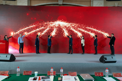 与会领导上台按下手印,共同印证浙江省高校课程思政大讨论和《“红船精神+”课程思政教学案例汇编》编写工作正式启动。