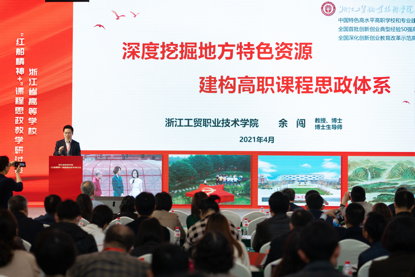 在大会报告环节,浙江大学科技与社会发展研究所所长丛杭青教授、浙江工贸职业技术学院院长余闯教授分别作了题为“课程思政教学创新途径”“深度挖掘地方特色资源 建构高职课程思政体系”的主旨报告。