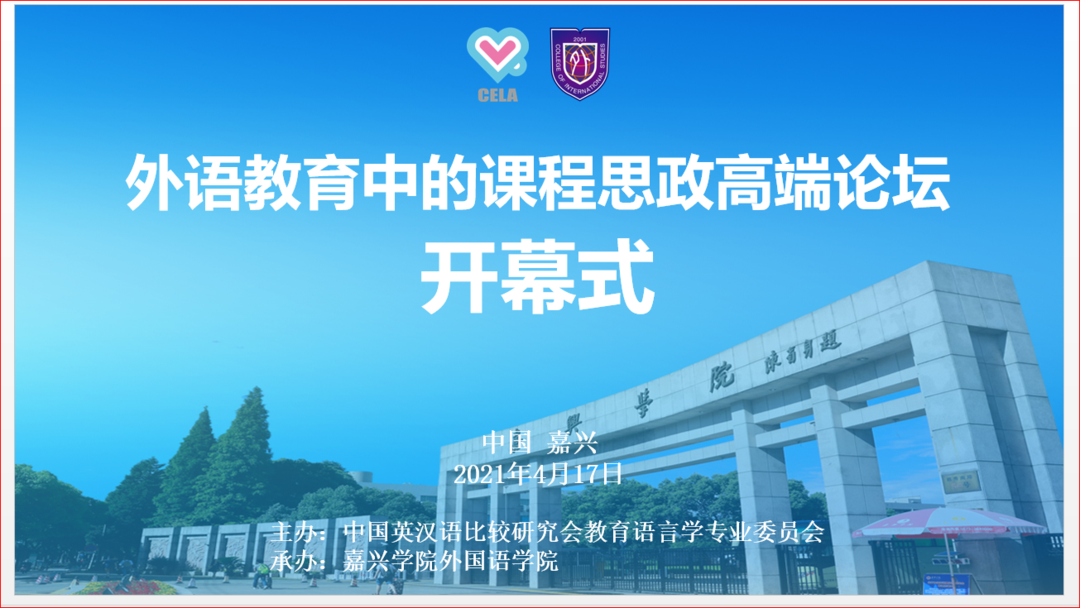 4月17日,由中国英汉语比较研究会教育语言学专业委员会主办,嘉兴学院外国语学院承办的“外语教育中的课程思政”高端论坛在嘉兴召开。