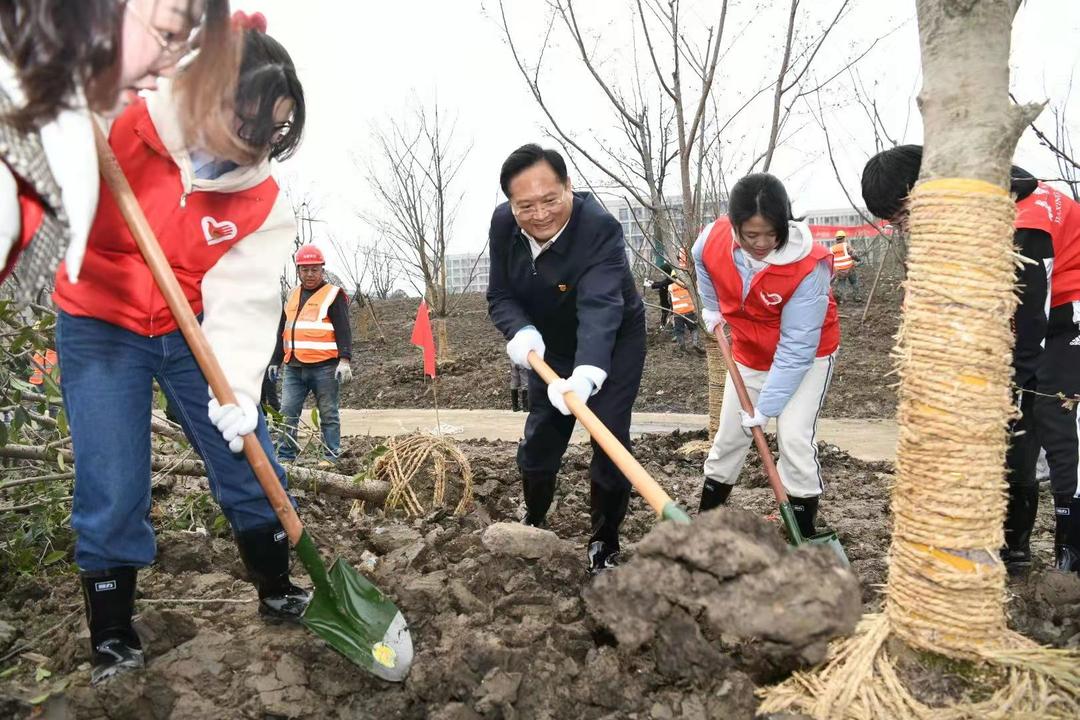 3月12日是第43个植树节。下午,张兵、毛宏芳、刘冬生、高玲慧、王涛等市四套班子领导与市级机关干部、大学生代表一起,来到嘉兴学院梁林校区扩建工程二期,参加义务植树活动。