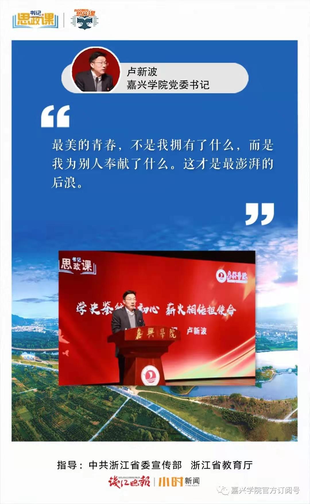 面对台下的嘉兴学院学子,卢新波从身边的南湖讲起,从革命的起航红船讲起,细述那些与红船有关的“四史”故事。