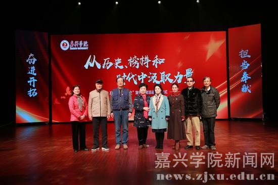 12月23日下午,嘉兴学院在梁林校区小剧场举行“四史”宣传教育活动启动仪式暨书记思政课。嘉兴学院党委书记卢新波,党委副书记吴云达、贾文胜,党委委员、教务处处长朱蓉出席仪式。嘉兴市新四军历史研究会常务副会长兼宣讲员、校外辅导员、嘉兴学院党委原副书记唐瑞娥,嘉兴市新四军历史研究会副会长兼宣讲员、校外辅导员文邦卫,嘉兴市新四军历史研究会副秘书长、宣讲团团长、校外辅导员张志宏,嘉兴市新四军历史研究会宣讲员、校外辅导员张红宇、印俊、吴嘉、魏星、王世英应邀出席。师生代表共400余人现场参加仪式,4万余人次通过微博、抖音、B站、微信、电脑端五大网络平台同步在线观看。
