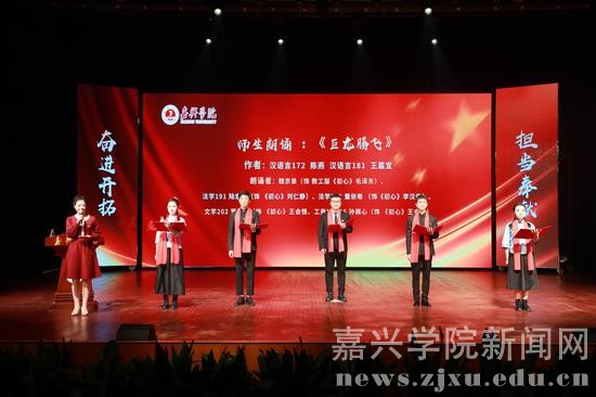 仪式分为“传承红色基因,弘扬革命精神”“回望发展历程、再续奋斗华章”“学习党史国史、践行初心使命”三个篇章。嘉兴学院校园文化品牌精品项目——“忘年交”结对子活动学生代表刘泓君展示了活动自开展以来取得的成绩;烈士子女代表张红宇、魏星、印俊分别讲述了父辈抗战的感人故事。唐瑞娥以《在学习“四史”中坚定“四个自信”》为题分享了她对于“四史”教育的三个方面认识。话剧《初心》师生演员代表带来了诗朗诵《巨龙腾飞》。
