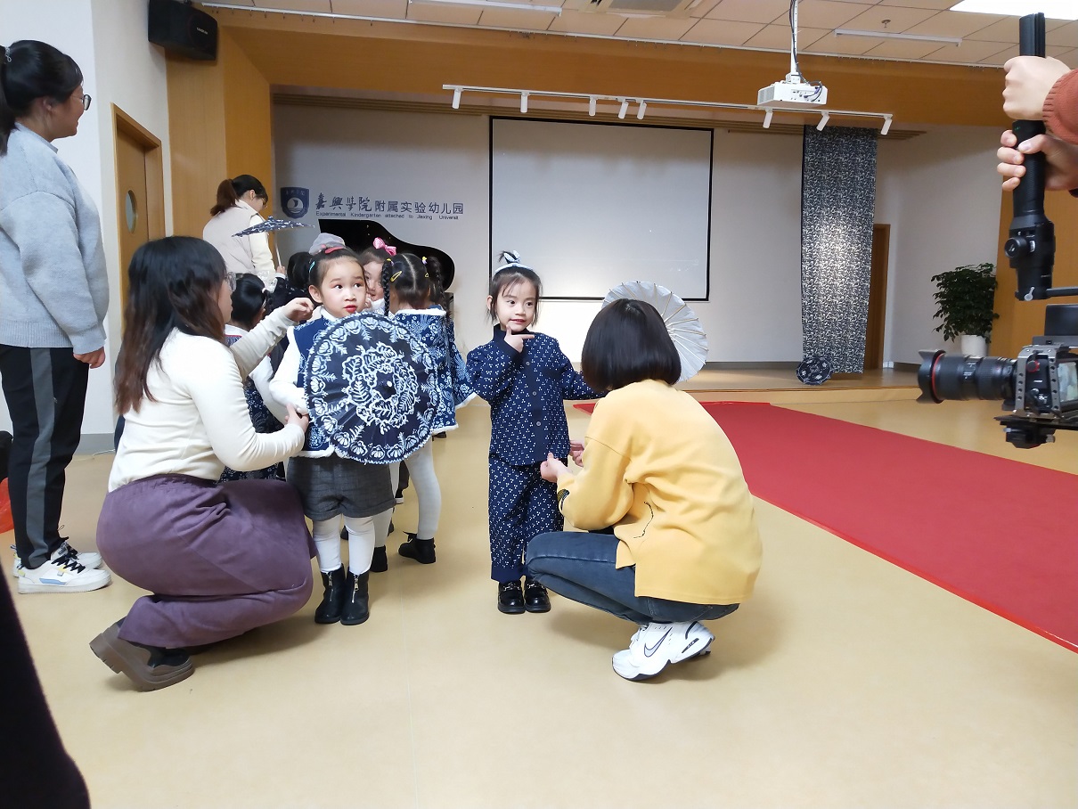 这场美妙绝伦的幼儿非遗时装秀,还有嘉兴学院大学生的贡献。大哥哥、大姐姐们为孩子们搭配衣服和饰品,拍摄照片和视频,共同领略非遗文化的魅力。