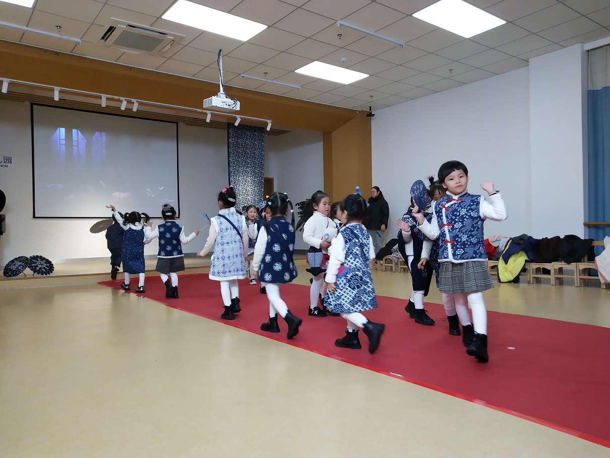 本着“非遗文化也要从娃娃抓起”的理念,嘉兴学院附属实验幼儿园让小朋友们穿戴具有蓝印花布特色元素的服装和配饰,以时装秀的形式来展示非物质文化遗产。具有古典韵味的音乐搭配简单易学的动作,孩子们身着蓝印花布制成的时装,神采飞扬地进行表演,活泼地摆着各种造型,将民族色彩穿出时代个性,让蓝印花布焕发出富有儿童特色的新活力。