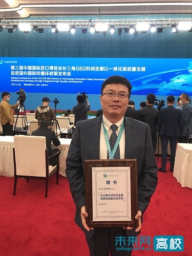 11月8日,在第三届中国国际进口博览会期间,长三角G60科创走廊以一体化高质量发展促进国内国际双循环政策发布会在上海举行。发布会现场成立了长三角G60科创走廊专家咨询委员会,嘉兴学院机电工程学院副院长高慧敏作为专家代表之一接受聘书。