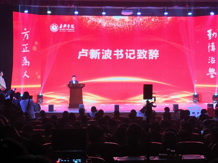 10月17日上午,秋日的嘉兴学院,阳光明媚。越秀校区第二教学楼报告厅里,洋溢着新老校友的欢歌笑语。嘉兴学院办学106周年(本科办学二十周年)校庆纪念活动在这里举行。嘉兴学院党委书记卢新波、副校长胡俊云出席活动。毕业20周年返校校友、党委(校长)办公室、宣传部、教务处、学生处、团委、校友办相关负责人,各二级学院分管校友工作负责人、校友联络员同时参加了活动,活动由建筑工程学院建环112班校友叶志刚主持。