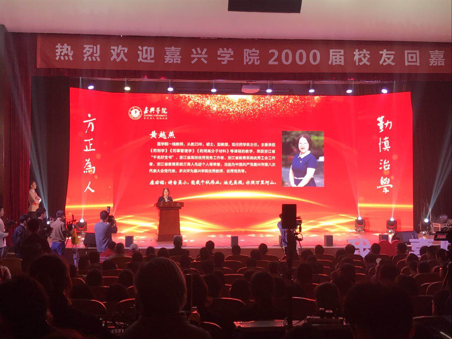 嘉兴学院医学院黄越燕老师作为教师代表发言,她表示,学校本科办学20年来,她深切感受到了学校日新月异的变化和跨越式发展,深感骄傲和自豪,同时也感受到了肩上的使命与责任。她将和嘉院全体教师一起,锐意进取,辛勤耕耘,不断提高教育教学质量,为社会培养输送更多优秀人才。